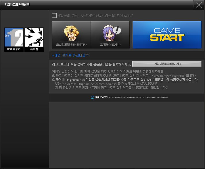 라그나로크에 처음 접속하시는 분들은 게임을 설치해주세요.