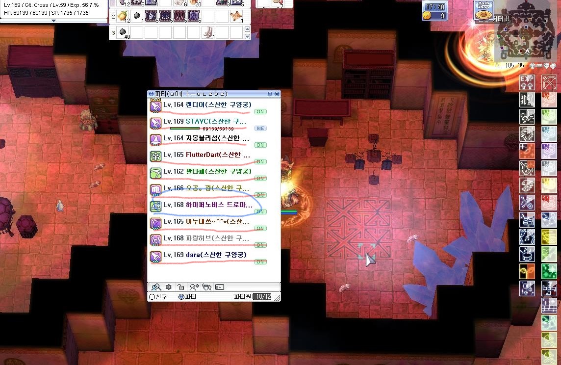 구양팟 입장 할때 167에47프로정도 였는데... 1시간 30분정도를 사냥을 해도 골피에 현재 이벤트 경치 버프 까지 받고 사냥을 하는데 1업20-30프로밖에 안올라서 이상해서 팟을 확인해보니...한 사람이 다 하는팟...실제로 사냥하는사람은 파란색으로 표기된사람이랑 저 (2명) 이서 사냥해서 저기 팟원들 경치를 다 올려주고 있는거 였음... 하두 이상해서 경치가 왜 안오르죠 ? 질문을 하니 님 렙이... 이렇게 멘트를 침...현재 렙에 이 사냥터인데 무슨 렙 타령인지... 하두 이상해서 탈하고 다른팟 가서 17분 사냥 하니 50프로 이상 올라감...