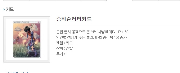아래 그림처럼 좀비슬러터 카드 옵션인데요~
