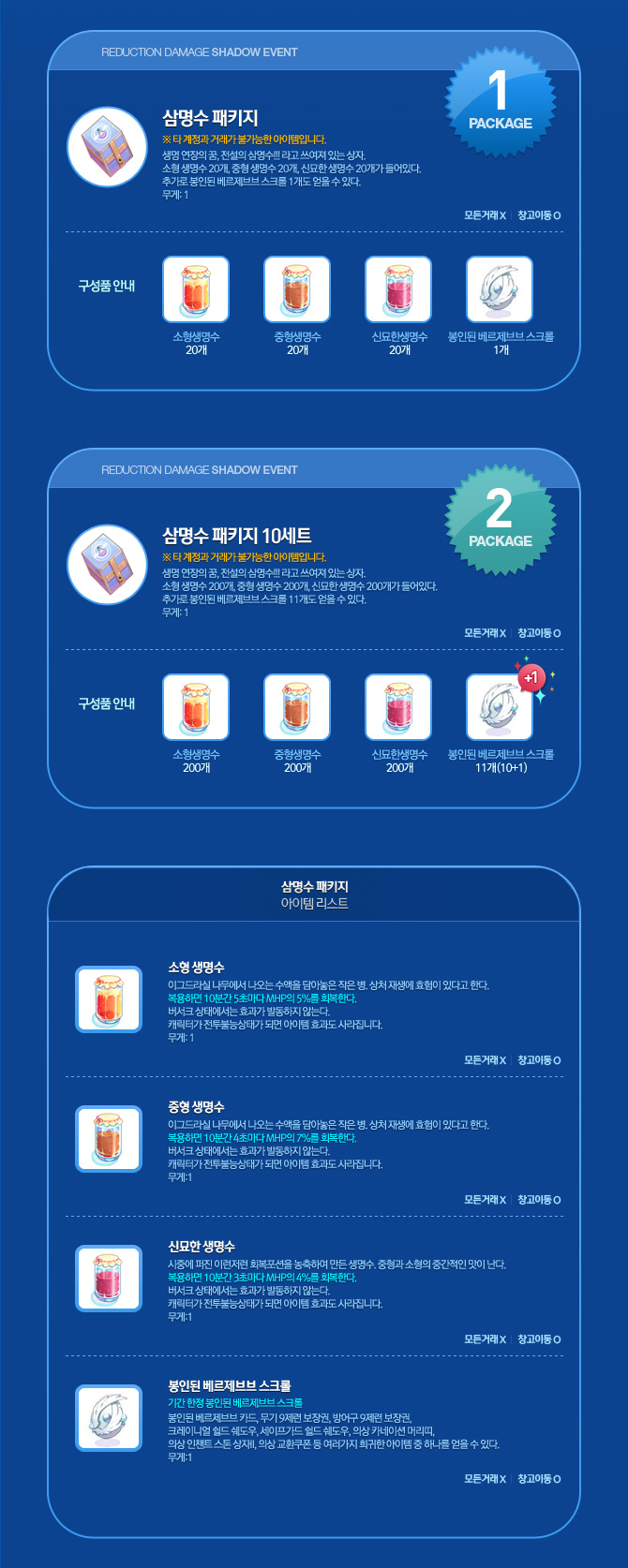 삼명수 패키지 아이템 리스트