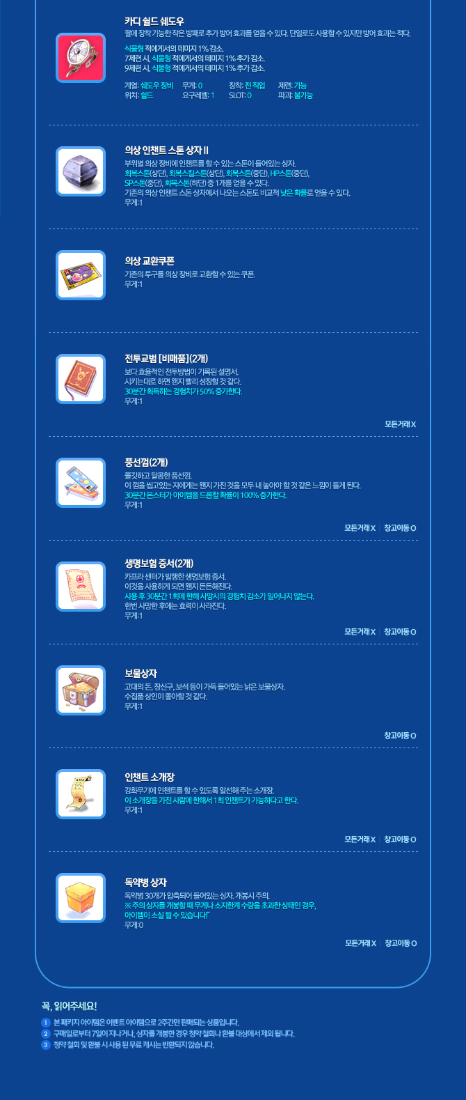- 본 패키지 아이템은 이벤트 아이템으로 2주간만 판매되는 상품입니다.