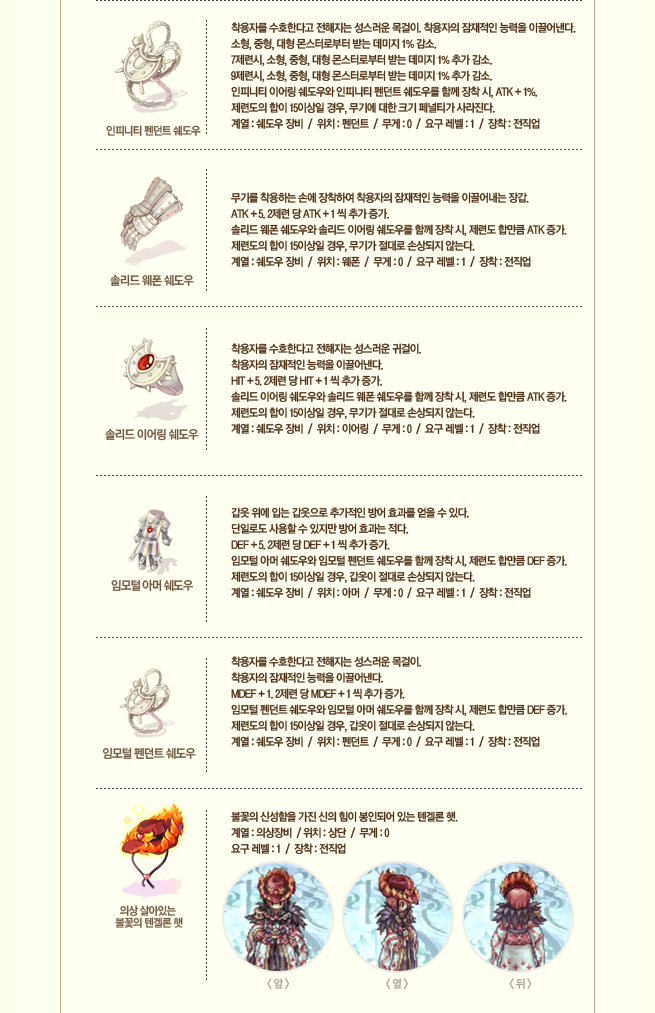 계열 : 쉐도우 장비 / 위치 : 아머 / 무게 : 0 / 요구 레벨 : 1 / 장착 : 전직업 -