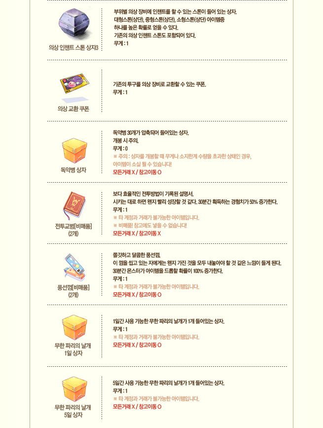 타 계정과 거래가 불가능한 아이템입니다. 비매품! 창고에도 넣을 수 없습니다!