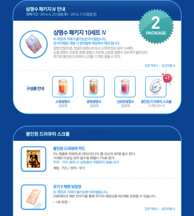 판매기간 : 2014. 6. 25 (점검 후) ~ 2014. 7. 9 (점검 전)