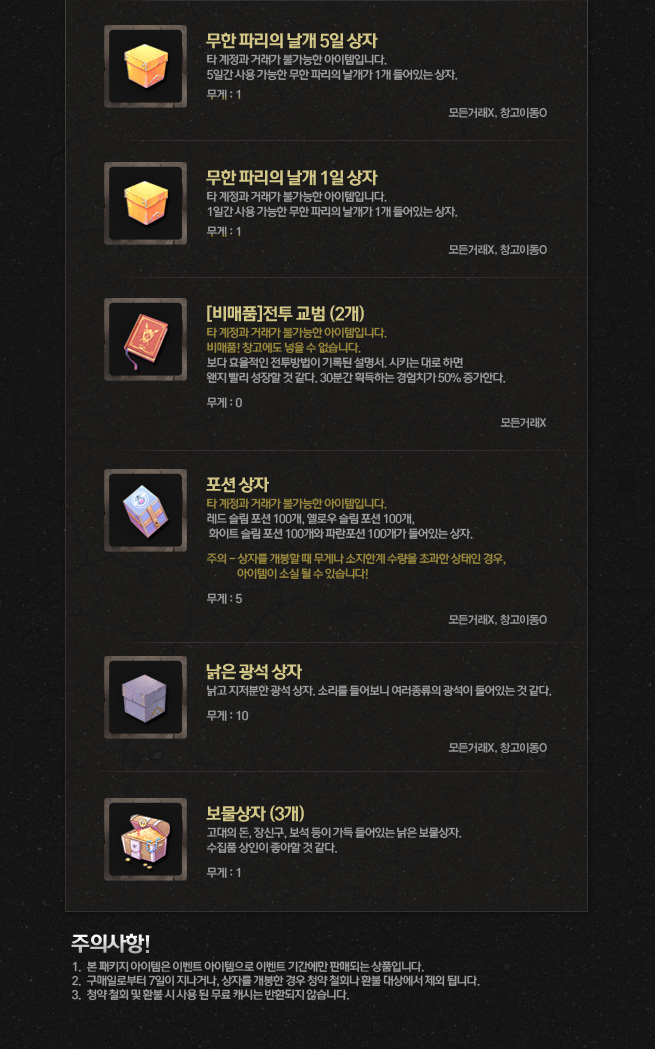 - 본 패키지 아이템은 이벤트 아이템으로 이벤트 기간에만 판매되는 상품입니다.