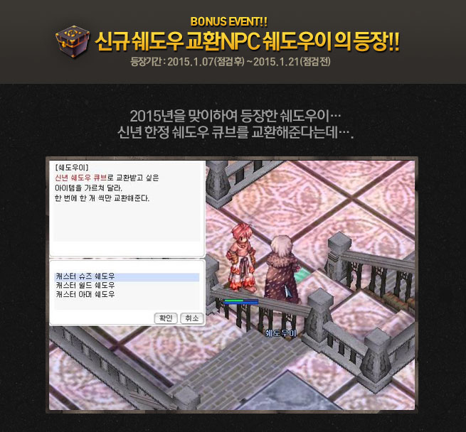 2015년을 맞이하여 등장한 쉐도우이… 신년 한정 쉐도우 큐브를 교환해준다는데….