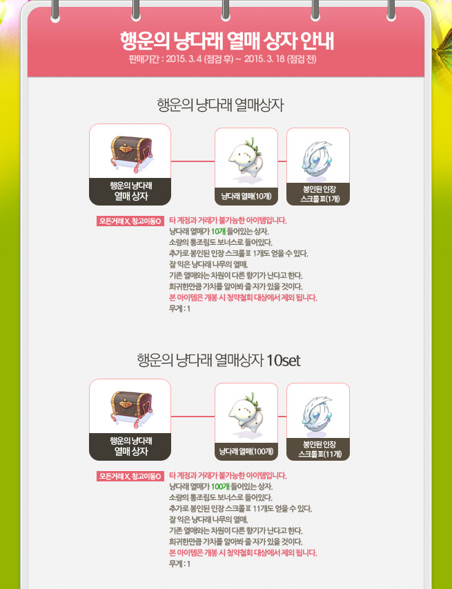 판매기간 : 2015. 3. 4 (점검 후) ~ 2015. 3. 18 (점검 전)