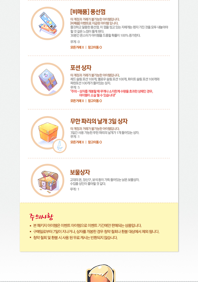 - 본 패키지 아이템은 이벤트 아이템으로 이벤트 기간에만 판매되는 상품입니다.