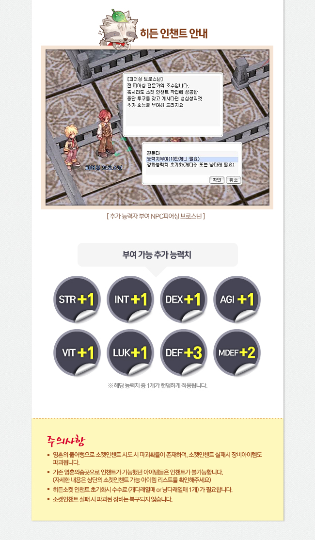 - 4. 소켓인챈트 실패 시 파괴된 장비는 복구되지 않습니다.