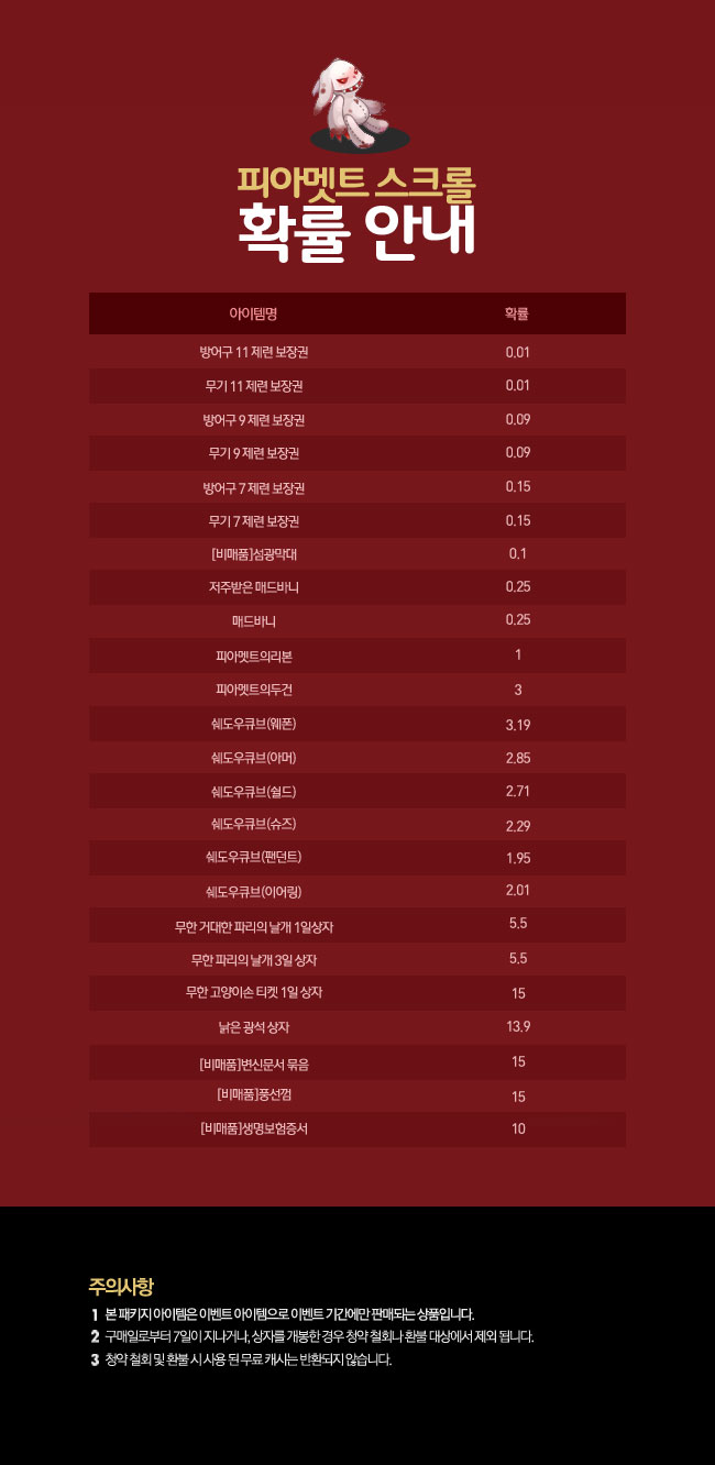 피아멧트 스크롤 확률 안내!!