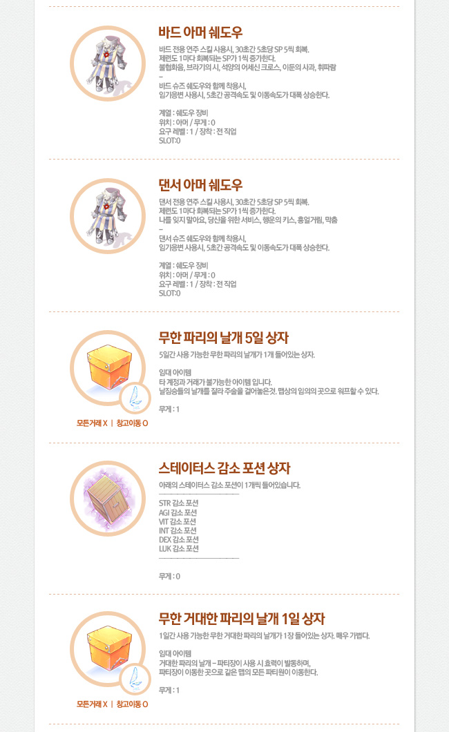 장착 : 노비스계열을 제외한 전직업 장착가능