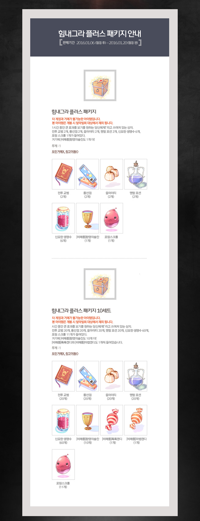판매기간 : 2016. 1. 6 (점검 후) ~ 2016. 1. 20 (점검 전)