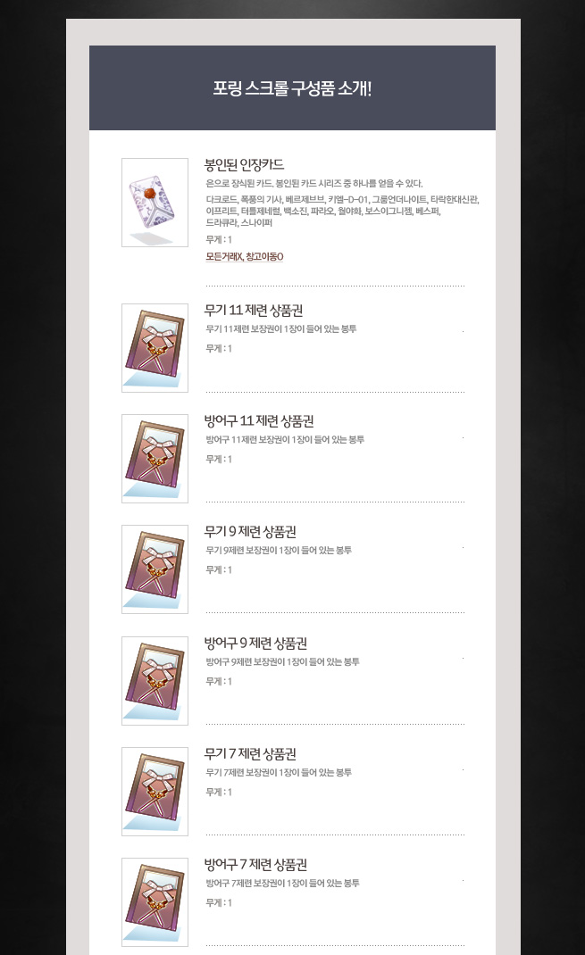 무기 11제련 보장권이 1장이 들어 있는 봉투