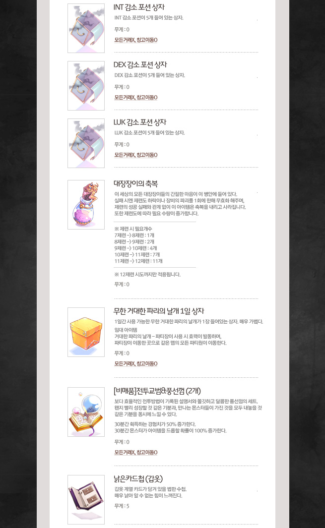 무게 : 30 / 요구 레벨 : 1