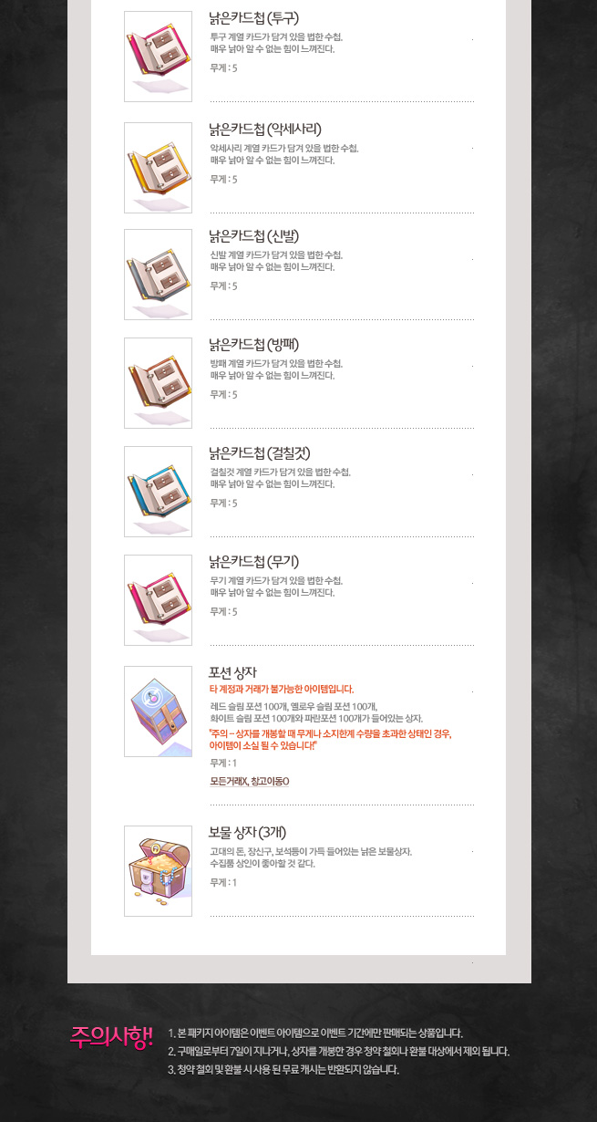 - 본 패키지 아이템은 이벤트 아이템으로 이벤트 기간에만 판매되는 상품입니다.