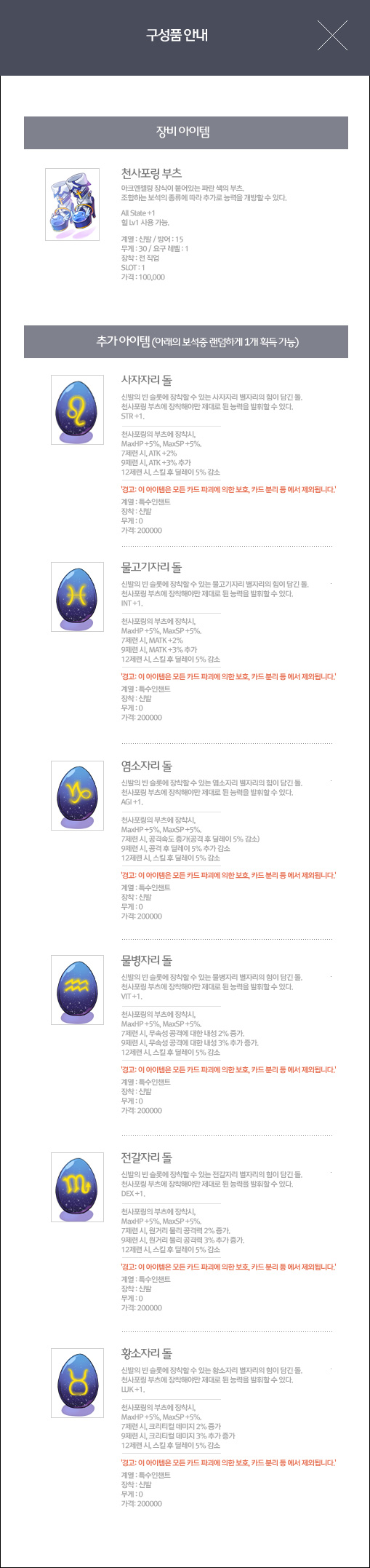 추가 아이템 (아래의 보석중 랜덤하게 1개 획득 가능)