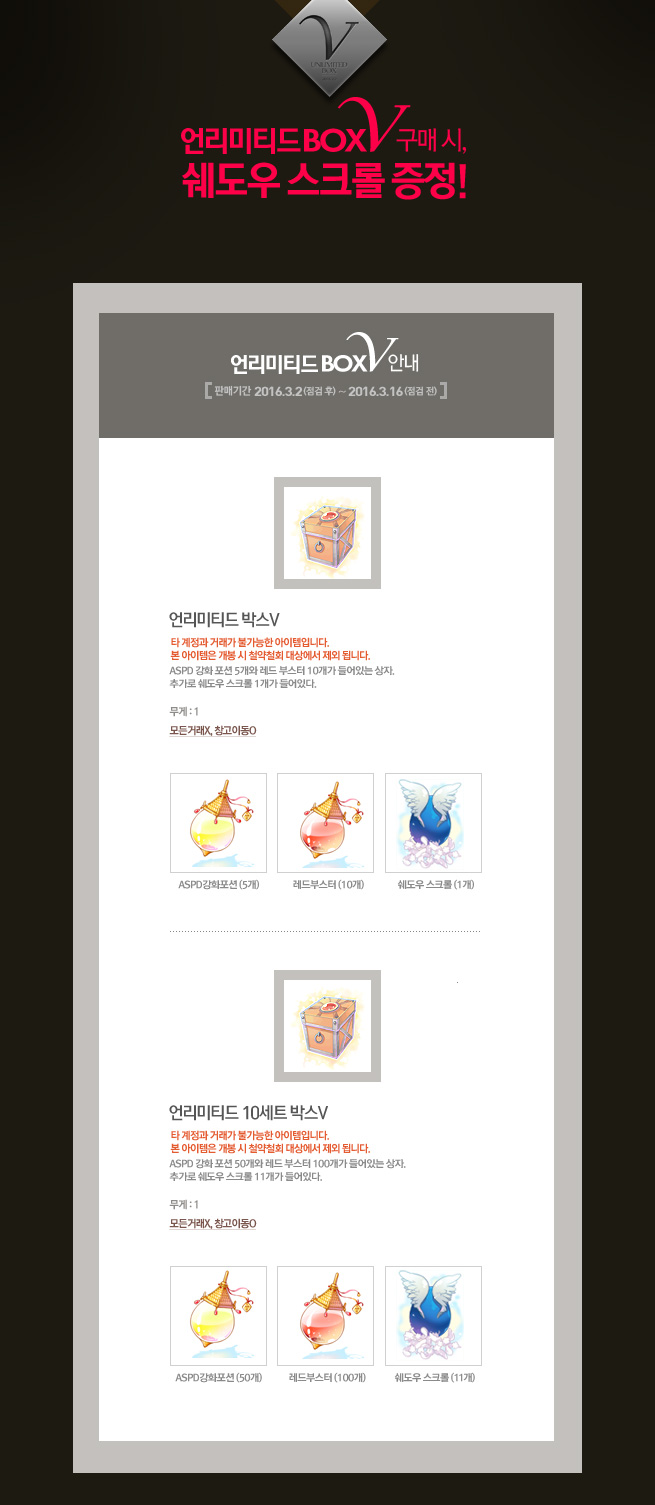 언리미티드박스V 구매 시, 쉐도우 스크롤 증정!