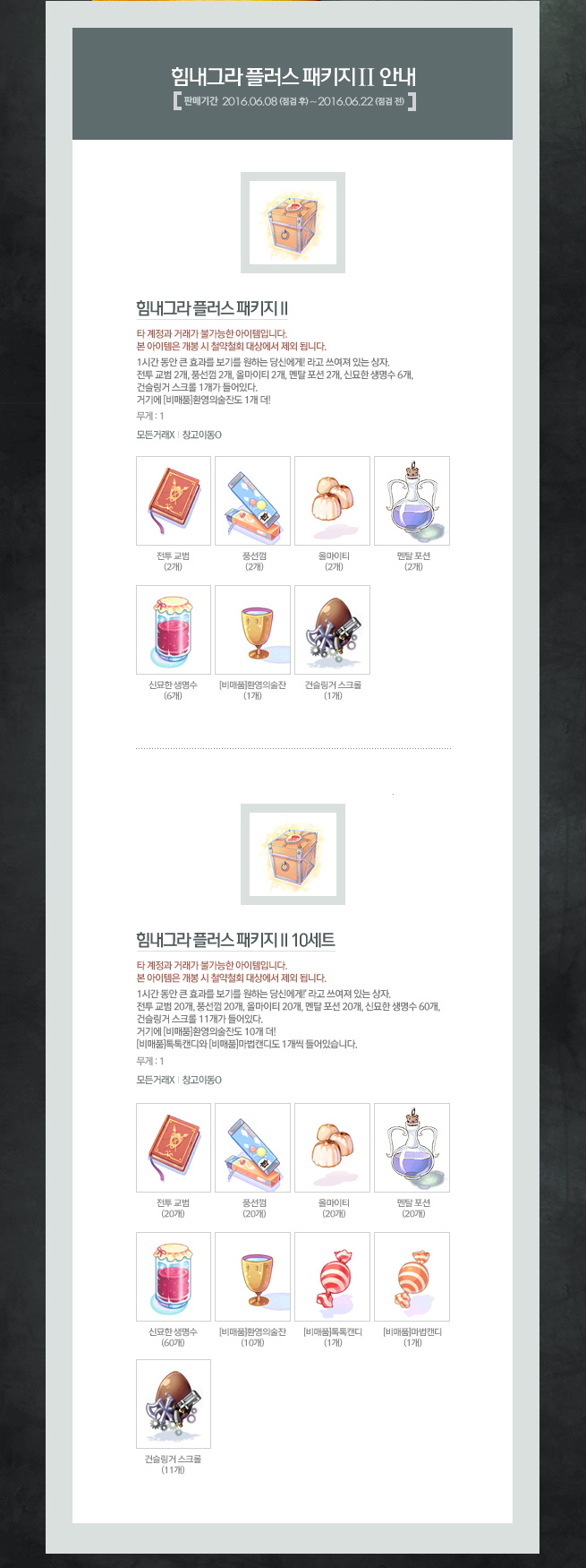 판매기간 : 2016. 6. 8 (점검 후) ~ 2016. 6. 22 (점검 전)