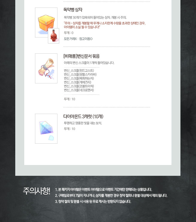- 본 패키지 아이템은 이벤트 아이템으로 이벤트 기간에만 판매되는 상품입니다.